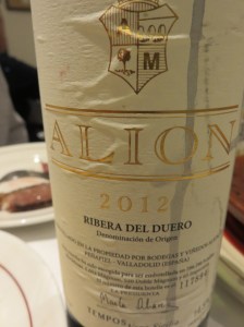 We had a bottle of Alión 2012, which perfectly paired with the beef.