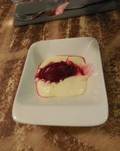 Also the dessert was delicious: puff pastry with cream and raspberries.